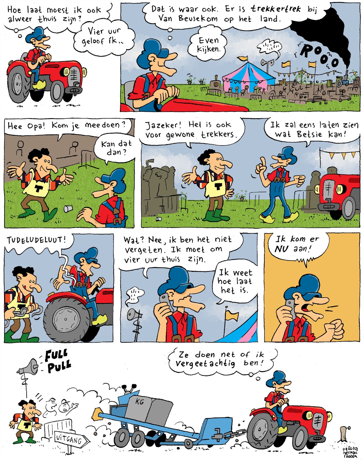 De Facebook-pagina van Opa heeft opeens veel meer dan 5.000 vind-ik-leukjes. Onderstaande strip met trekkertrek als onderwerp werd veel gedeeld en dat trokkertrok extra bezoek.