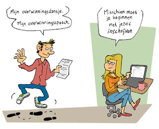 De cartoon gaat over het begin van de jaarlijkse verkiezing van de ‘Agrarisch Ondernemer van het Jaar.’