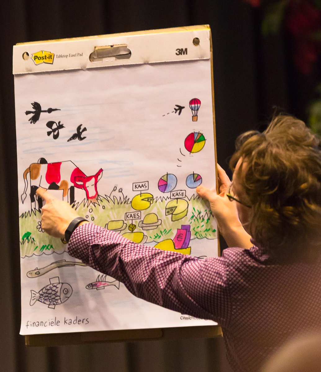 Afgelopen woensdag was ik tekenaar van dienst bij de bijeenkomst “Deltaplan Biodiversiteit”. Deze keer was ik er niet zozeer voor de cartoons als wel voor het maken van een impressie naar aanleiding van een kluwen geeltjes die van de deelnemers verzameld per thema werd aangereikt. Een soortement van live praatplaat.