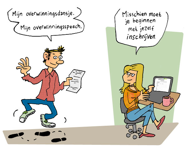 De cartoon gaat over het begin van de jaarlijkse verkiezing van de ‘Agrarisch Ondernemer van het Jaar.’