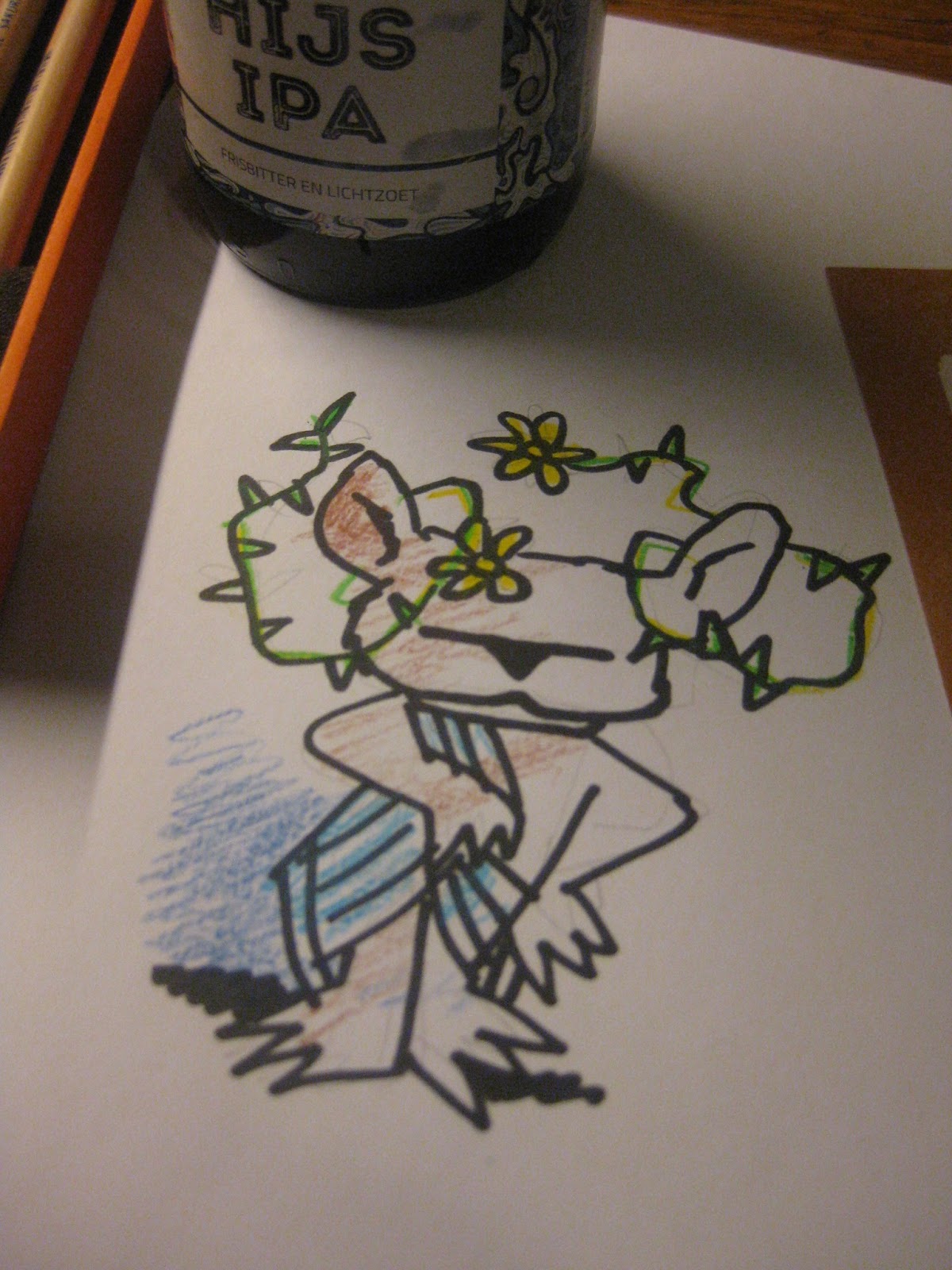 Nadat ik zo’n nieuw biertje gedronken heb maak ik een tekening. Een visuele recensie als het ware. Daar maak ik dan weer een foto van, en die zet ik op Facebook.