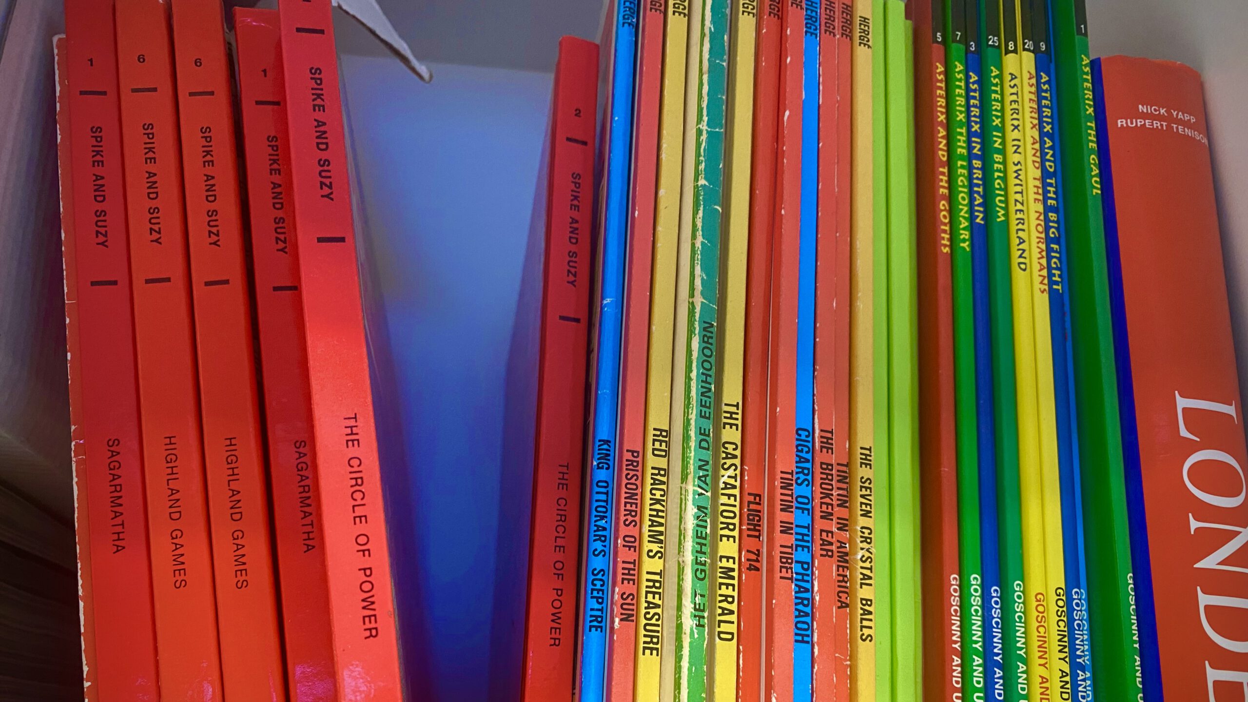 Op de school gaf ik les in het lokaal Engels. Dat deden ze onder andere met behulp van in het Engels vertaalde boeken van Suske en Wiske, Kuifje en Asterix.