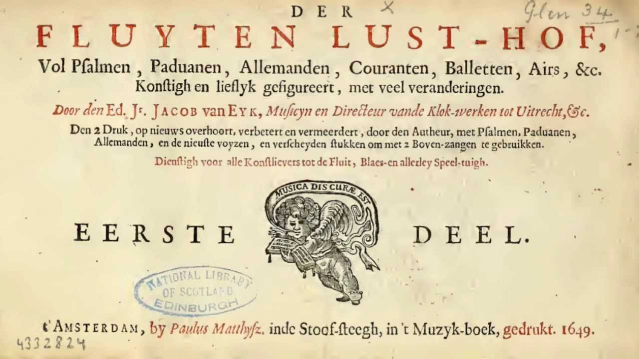 Een belangrijke componist in de zeventiende eeuw was Jacob van Eyck. Zijn Der Fluyten Lust-Hof was een blockbuster.