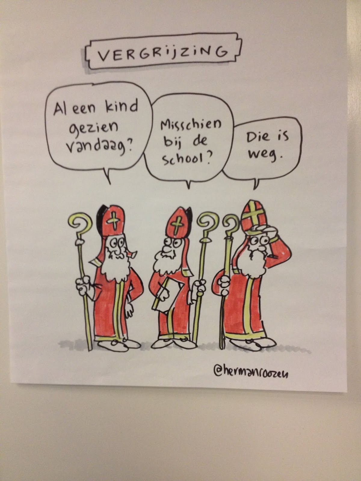 De festiviteiten rondom Sint Nicolaas zijn weer achter de rug. Vorige week heb ik nog live een cartoon getekend met maar liefst drie Sinterklazen. De Sint een rol geven ligt in deze tijd van het jaar voor nu eenmaal voor de hand. Vooral als het thema van de cartoon ook nog eens vergrijzing is.