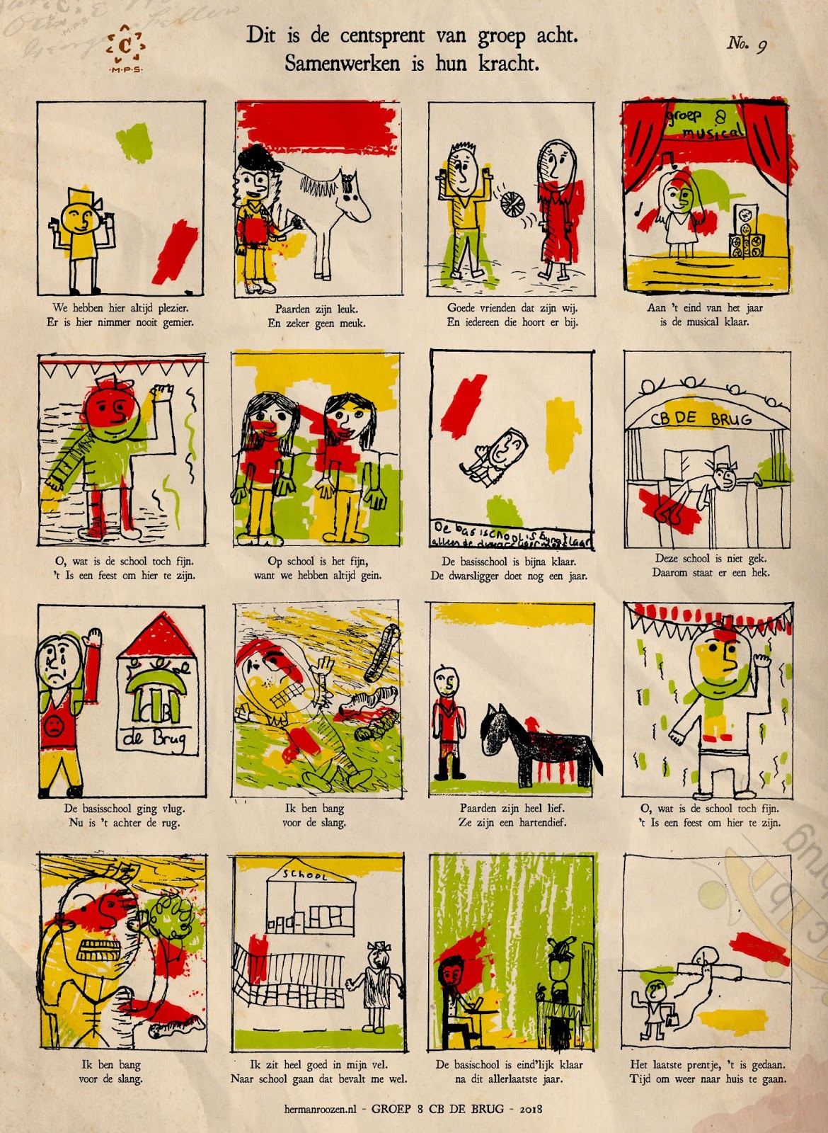 Tijdens de kinderboekenweek heb ik weer op diverse basisscholen striptekenles gegeven. En ik ben in de gelegenheid geweest om met een klas een centsprent te maken.