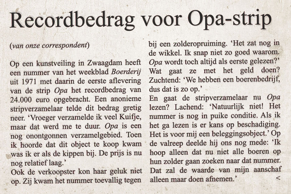 Ik hou niet van aprilgrappen. Voornamelijk omdat ik nogal goedgelovig ben. Niet handig om te zijn in deze moderne tijden. Dit jaar heb ik me bezondigd aan het uithalen van een aprilgrap. Geen sterke, want het bedrog ligt er duimendik bovenop, lijkt me. Onderstaand een bericht uit een niet nader te bepalen krant. Geplaatst op de Facebook-pagina van Opa. Overigens zou ik niets liever zien dan dat elke boer op zoek gaat naar oude nummers van Boerderij. Het is écht een onontgonnen gebied.