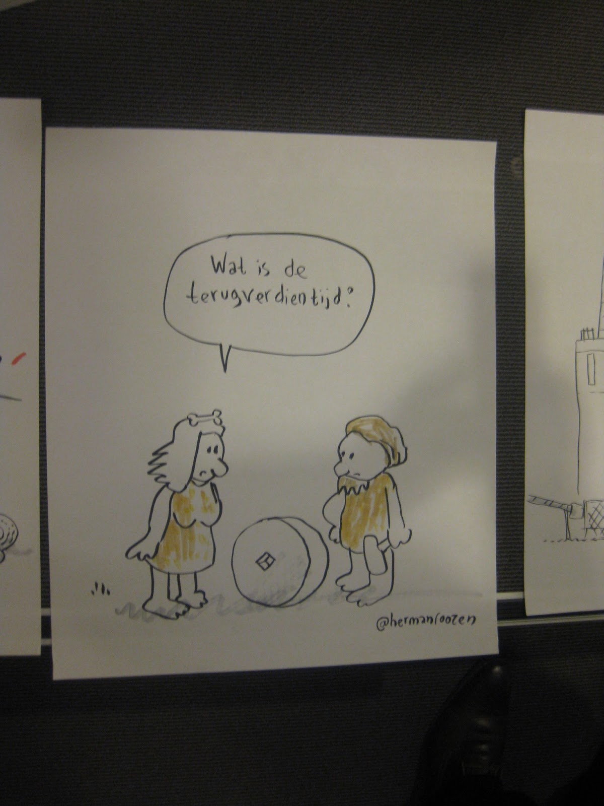 Die hoef je alleen maar te tekenen; er is altijd wel iemand tijdens een bijeenkomt die iets zegt wat er als tekst bij past. Vorige week was het de beurt aan de oermensen.