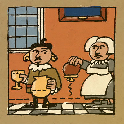 Dit is het eerste plaatje van deel 2 (of 1?) van het tweeluik Heldt van Hollandt dat momenteel te zien is in het Ikonenmuseum Kampen. Het geld is nu toch echt helemaal op en het gezin Van Rijn dreigt aan de bedelstaf te raken.