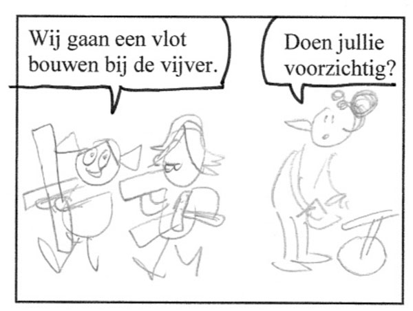Het is al weer een jaar of vijf geleden dat ik mijn laatste plotje voor Jan, Jans en de kinderen schreef. Wel heb ik daarna nog een paar keer plotjes voor de spin off geschreven: Karlijn, Catootje en de ouders. Dat verschijnt in Tina. Bijgaand het eerste plaatje van het verhaaltje ‘Vlot’, dat recent is aangekocht en dat later dit jaar, of begin volgend jaar, in Tina zal verschijnen.