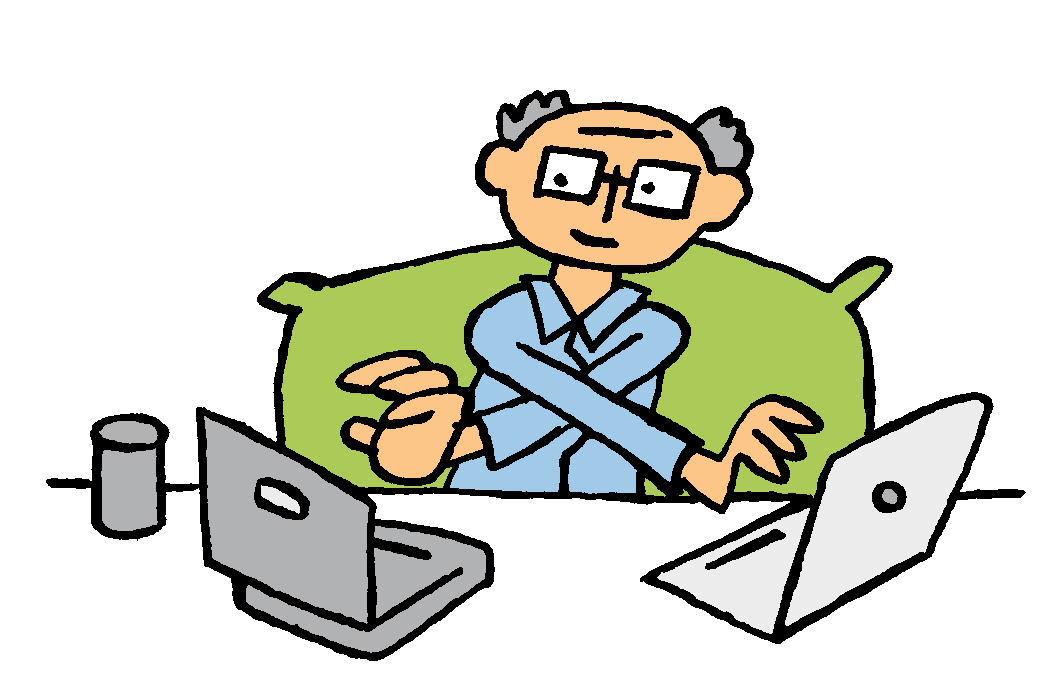 Illustratie voor een omstandigheid waarin mensen tijdelijk met twee computersystemen moeten werken.