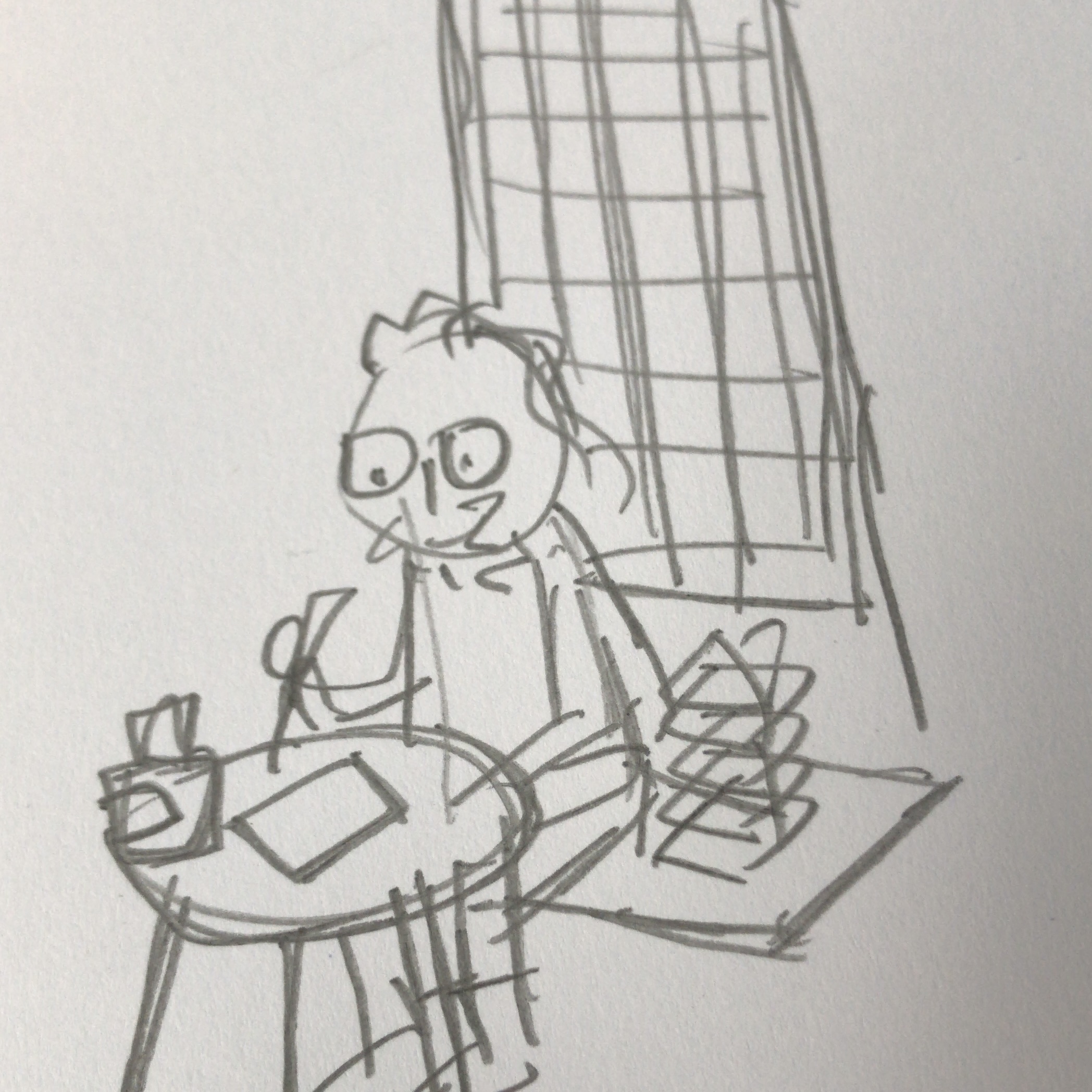 Bij de provinciale finale van de nationale voorleeswedstrijd zat ik op steenworpsafstand van de voorlezers. Van en voor elke voorlezer maakte ik een tekening die iets te maken had met het boek waaruit werd voorgelezen. Na afloop werden die ijlings ingelijst en overhandigd. Ik zag wat glunderende gezichten, dus ik denk dat het geslaagd was.