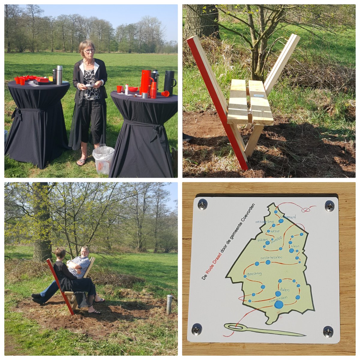 Een tekening die ik ietwat achteloos tijdens de G1000 in Coevorden had gemaakt is gepromoveerd tot logo en in die hoedanigheid op een bankje terecht gekomen. Dit bankje maakt deel uit van een wandel- dan wel fietsroute door de gemeente.