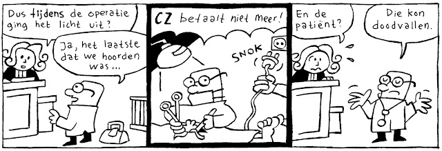 Vandaag is er een protestdemonstratie op het Malieveld in Den Haag ten behoeve van de GGZ. Onderstaande twee stripjes worden daar als spandoek gebruikt, als het goed is. Het moest allemaal nog op het laatste moment, dus ik weet niet zeker of ze nog op tijd de gang naar de drukker hebben kunnen maken. Weet u wat? Ga zelf even kijken, als u toch in de buurt bent.