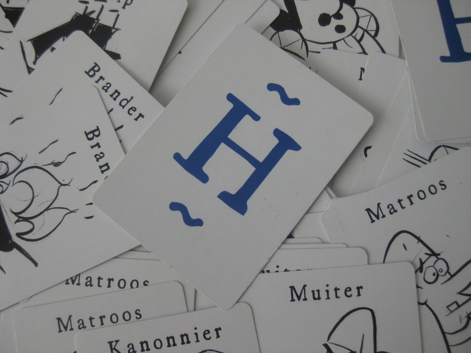 Na lang testen en schaven aan de regels begint het kaartspel van De Ruyter zowaar ergens op te lijken. Op de rug van de kaarten van het prototype staat nog pontificaal de ~H~ van Heldt van Hollandt. Die zal verdwijnen. Op de achterkant komt waarschijnlijk een kanonskogel, want elke kaart kan gespeeld worden als kanonskogel.