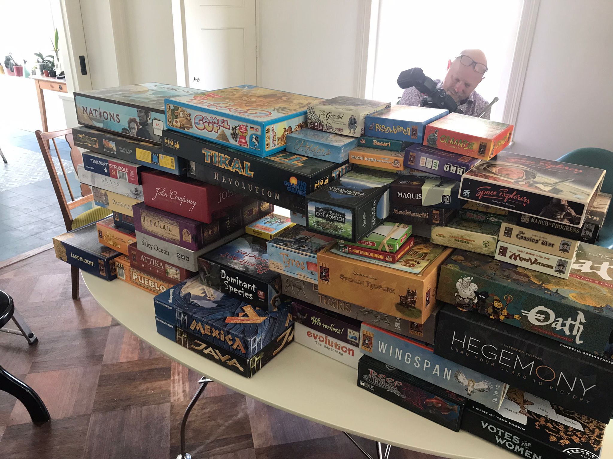 De voorbereidingen zijn in volle gang. Voor het eerstvolgende nummer van StripGlossy werd een foto gemaakt van (een deel van) mijn bordspellencollectie. Daar maakte ik dan weer een foto van.