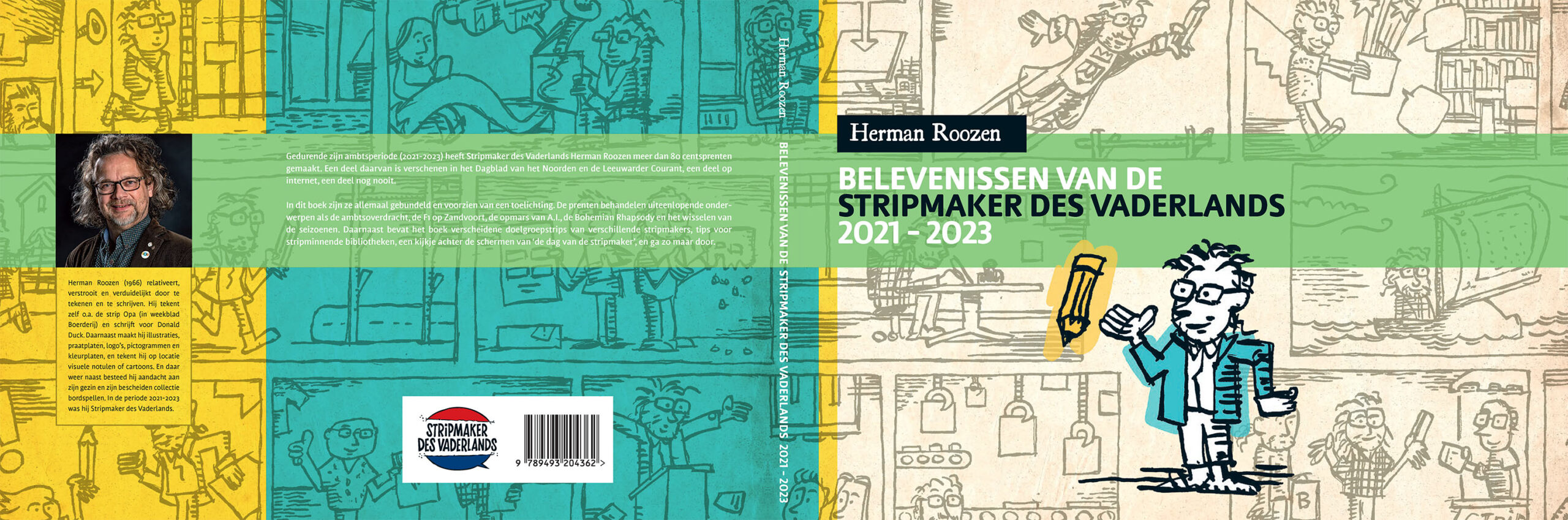 Hieronder ziet u de hele buitenkant in volle breedte. En daar tussenin zitten 200 pagina’s gevuld met centsprenten en toelichtingen en wat dies meer zij. Vandaag (11 maart) zijn de bestanden naar de drukker gegaan. Zaterdag 6 april is het boek voor het eerst door te bladeren in Deventer tijdens de Oost-Nederlandse stripboekenbeurs.