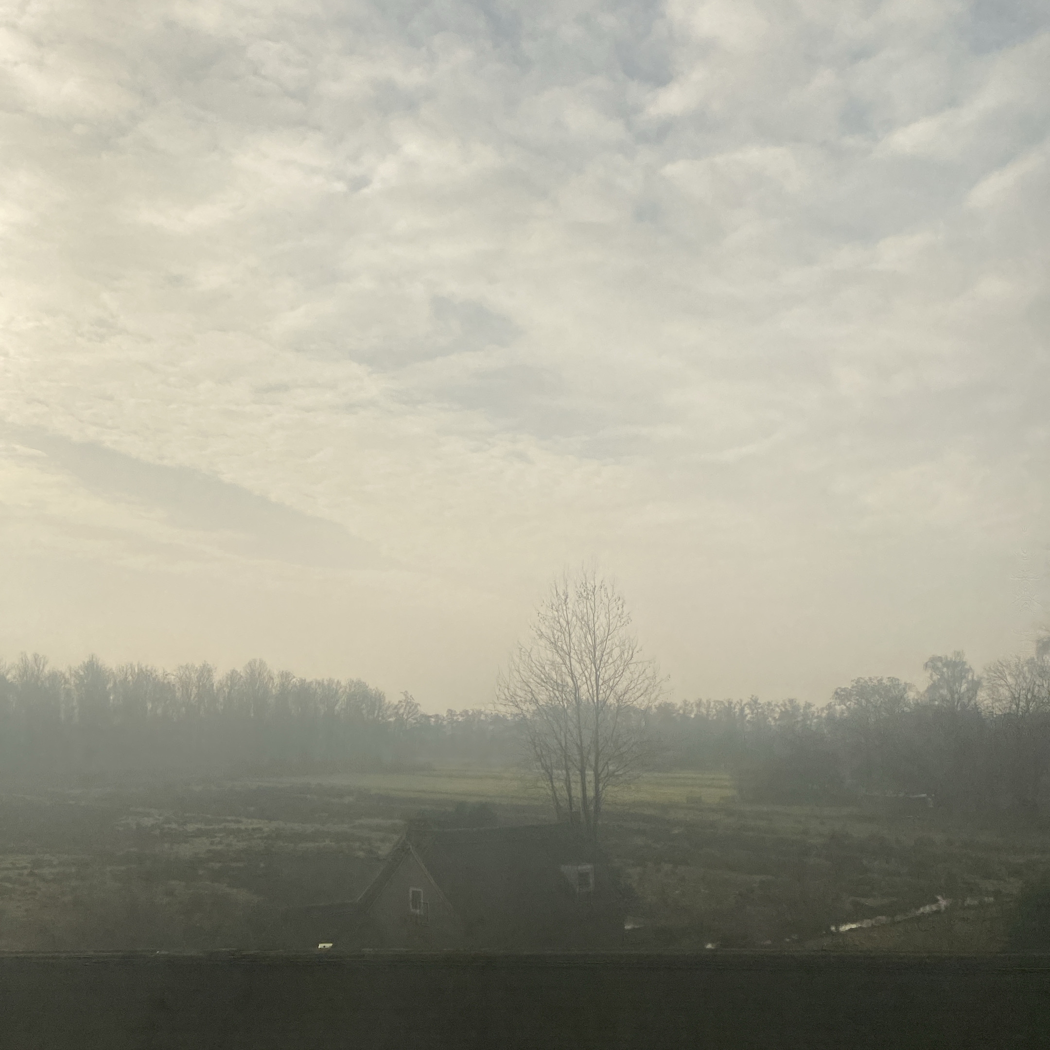 Naar Amsterdam (en Utrecht) ging ik met de trein, en ik heb er een gewoonte van gemaakt om dan op Instagram (@hermanroozen) een foto van het uitzicht te zetten. De telefoon hou ik tegen het raam. De foto snij ik vervolgens bij zodat de horizon op 1/3 van de onderkant zit. Elke foto geef ik de hashtag #treinleven mee. Zo heb ik ondertussen een aardige collectie. Misschien moet ik daar eens wat mee doen.