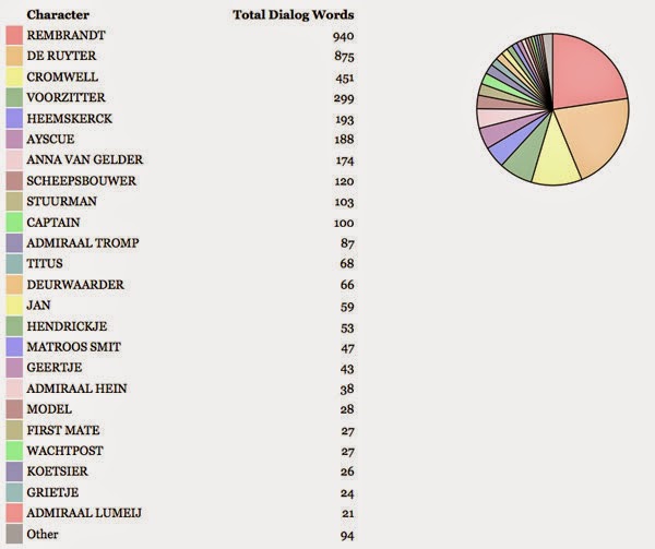 In Heldt van Hollandt lopen er een stuk minder rond. Rembrandt en De Ruyter zijn verreweg het meest aan het woord. Dan hebben we nog Cromwell – de grote vijand – en Ayscue – de kleine vijand. Dat is het wel zo’n beetje. Al die admiralen (Tromp, Hein en Lumeij) schrijf ik er misschien nog uit.